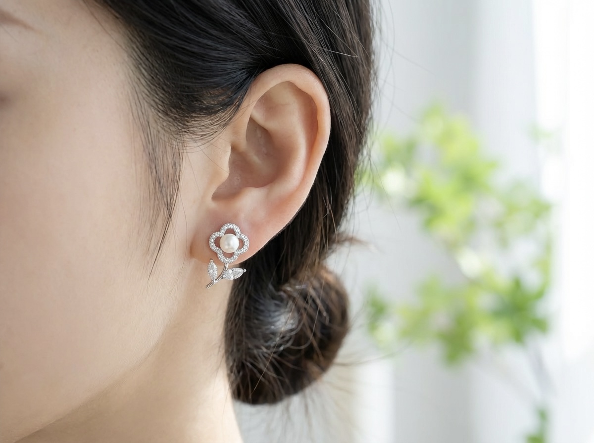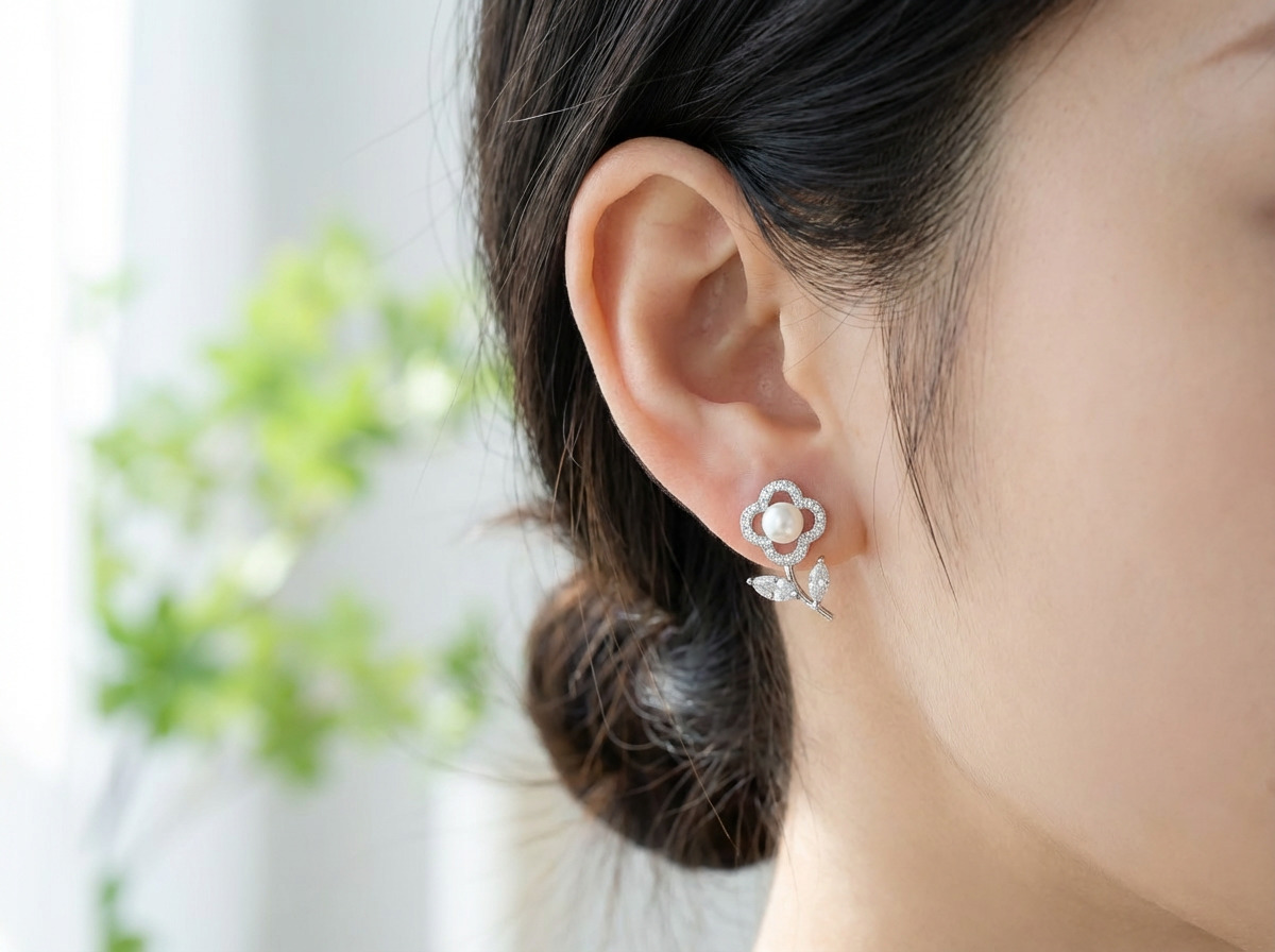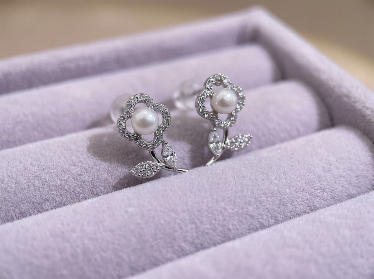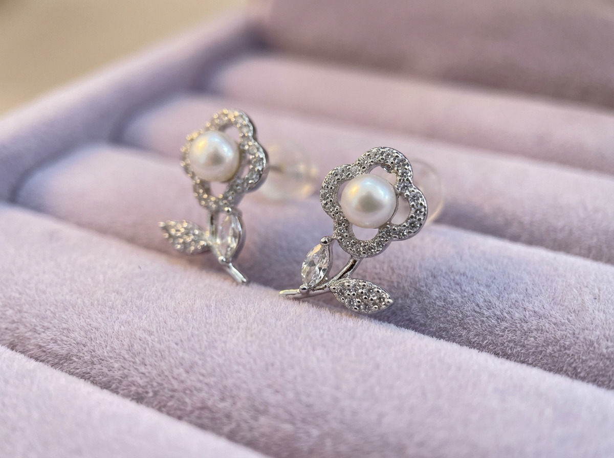 珍珠玫瑰耳飾-銀珍珠玫瑰耳飾-銀