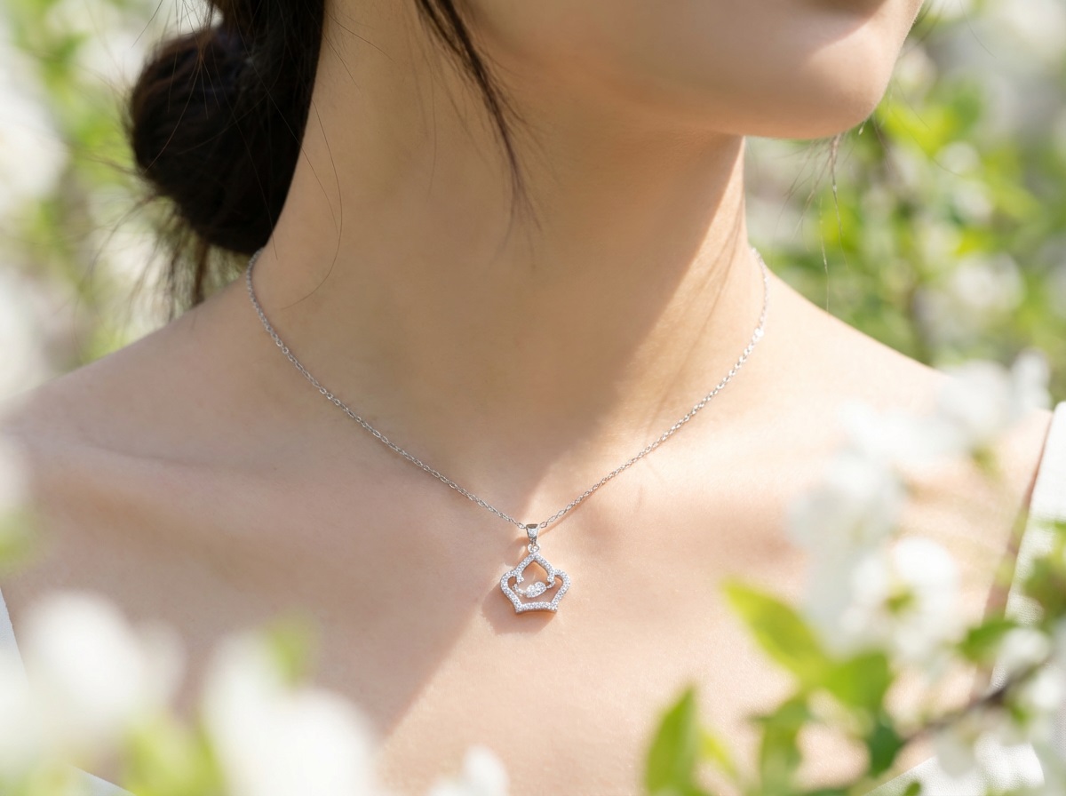 這款項鍊以「皇冠」為設計核心,象徵著高貴與獨立,並結合了獨特的「靈動鑲嵌」技術,讓配戴者在舉手投足間都能散發動人光芒。