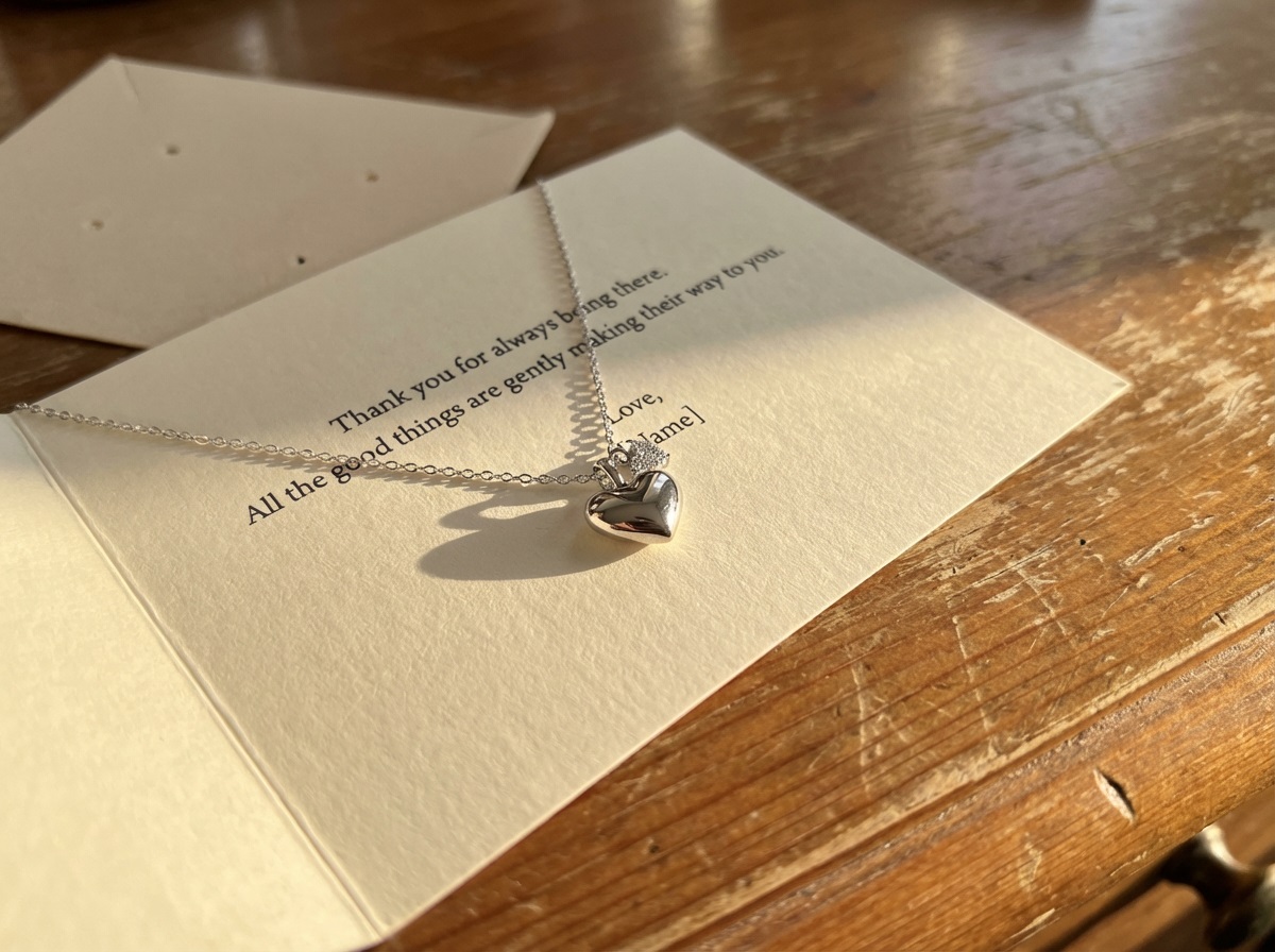 精緻的銀色立體愛心墜飾,搭配極細閃耀纖鍊,在鎖骨間輕盈躍動。這款項鍊完美融合了經典的浪漫與現代的簡約,無論是日常穿搭還是重要時刻,都能為妳增添一份溫柔氣息。