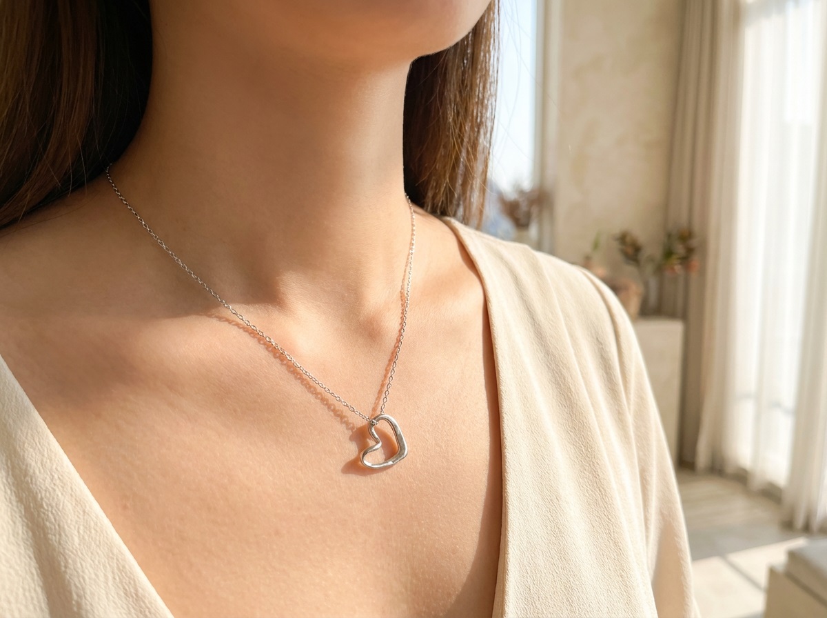 這款項鍊採用立體鏤空設計,透過幾何線條的交織,打破了實心墜飾的沉重感。