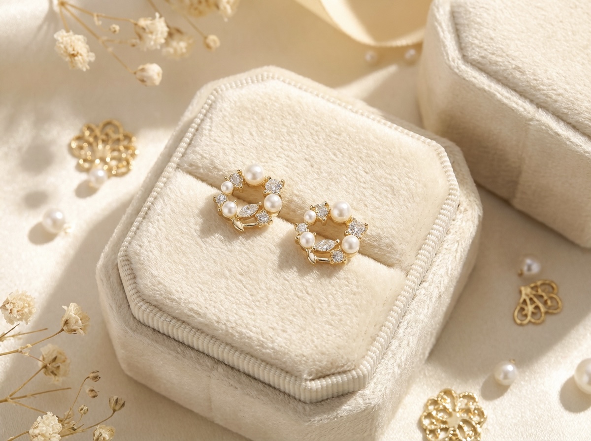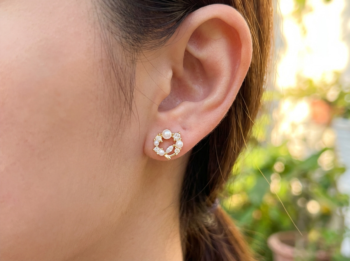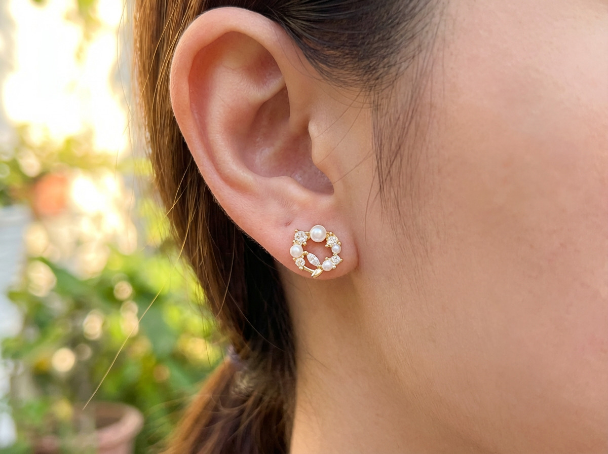 花圈珍珠 耳飾