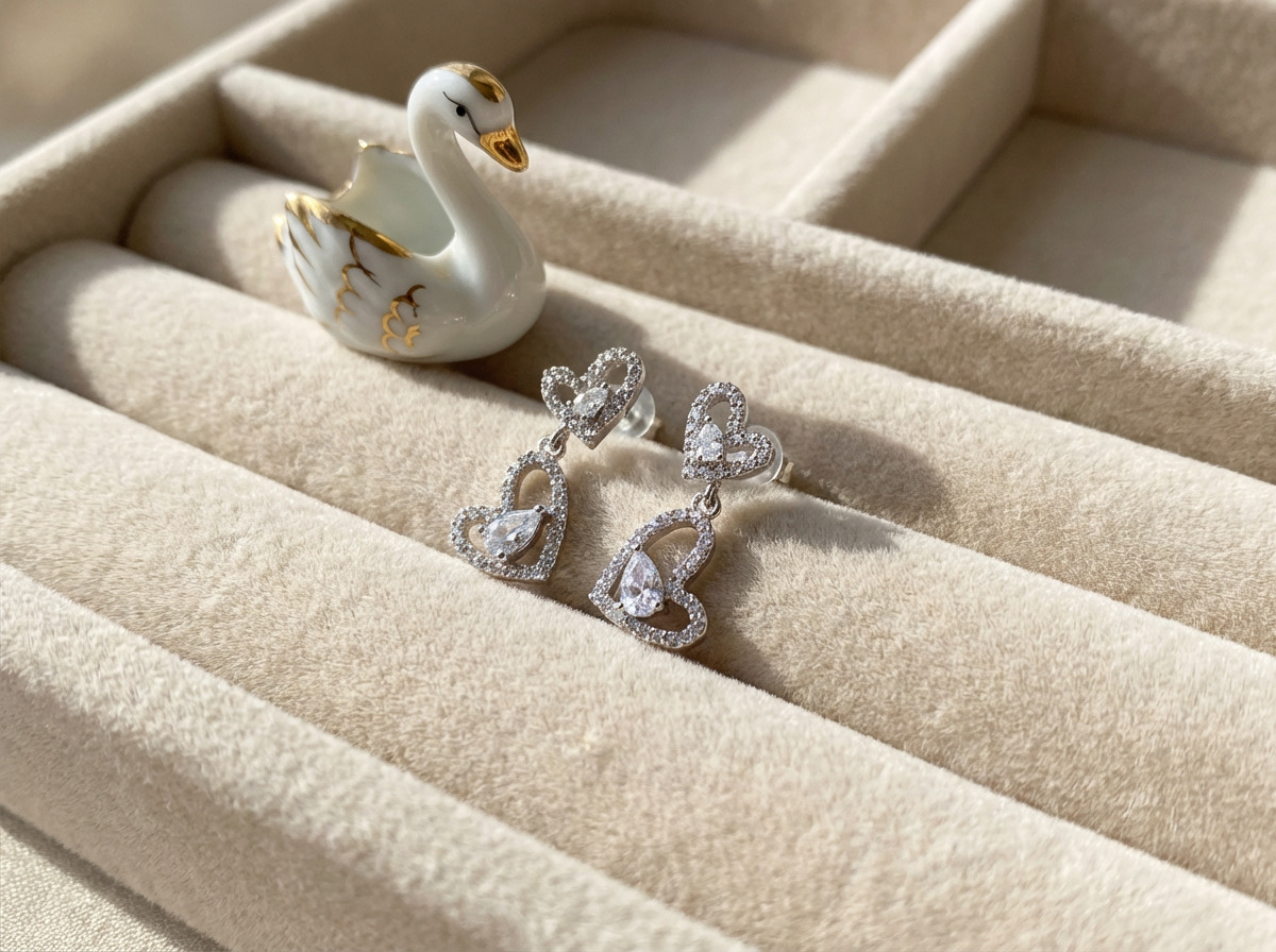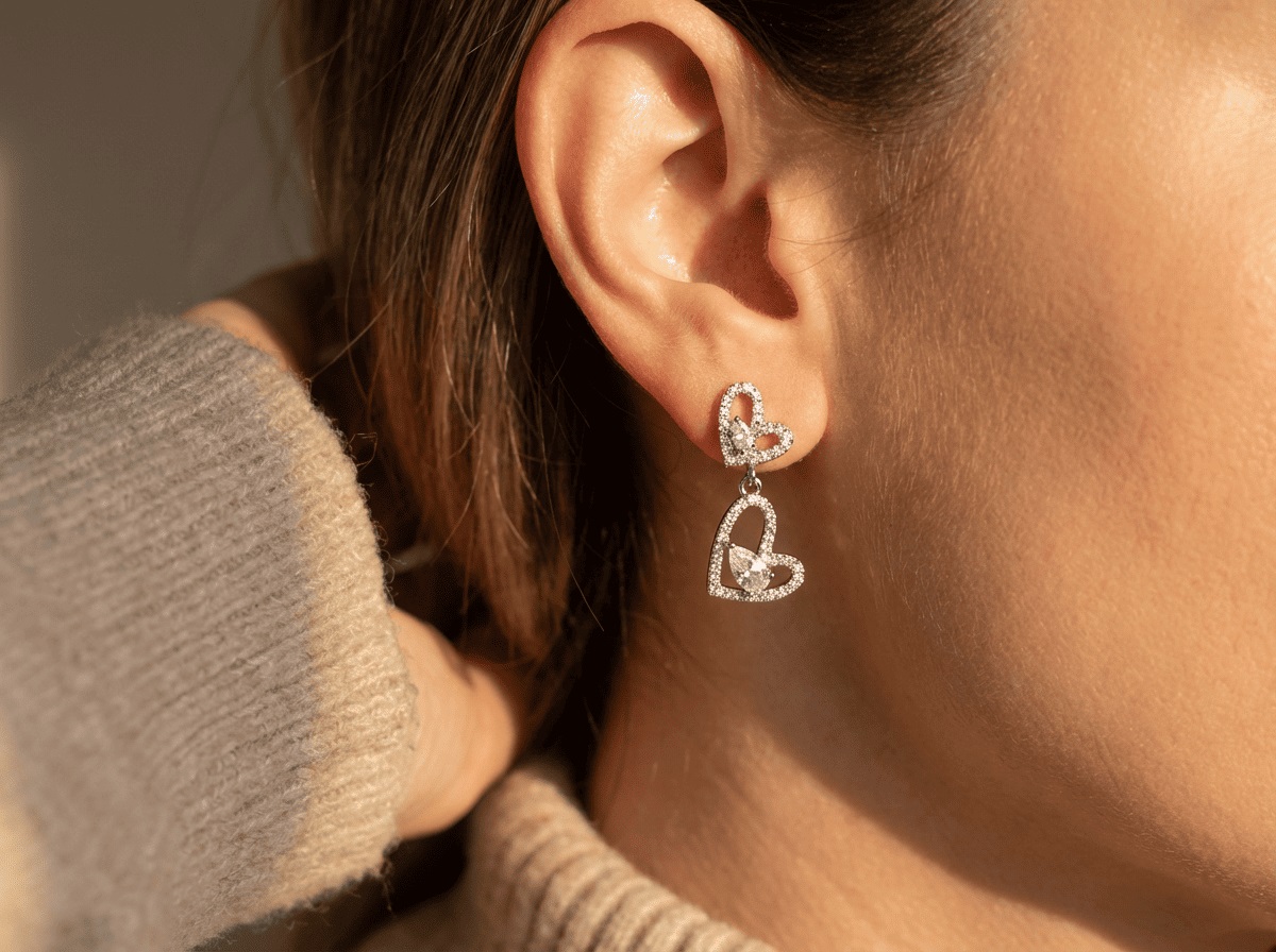 雙愛心帶鑽垂墜 耳飾雙愛心帶鑽垂墜 耳飾