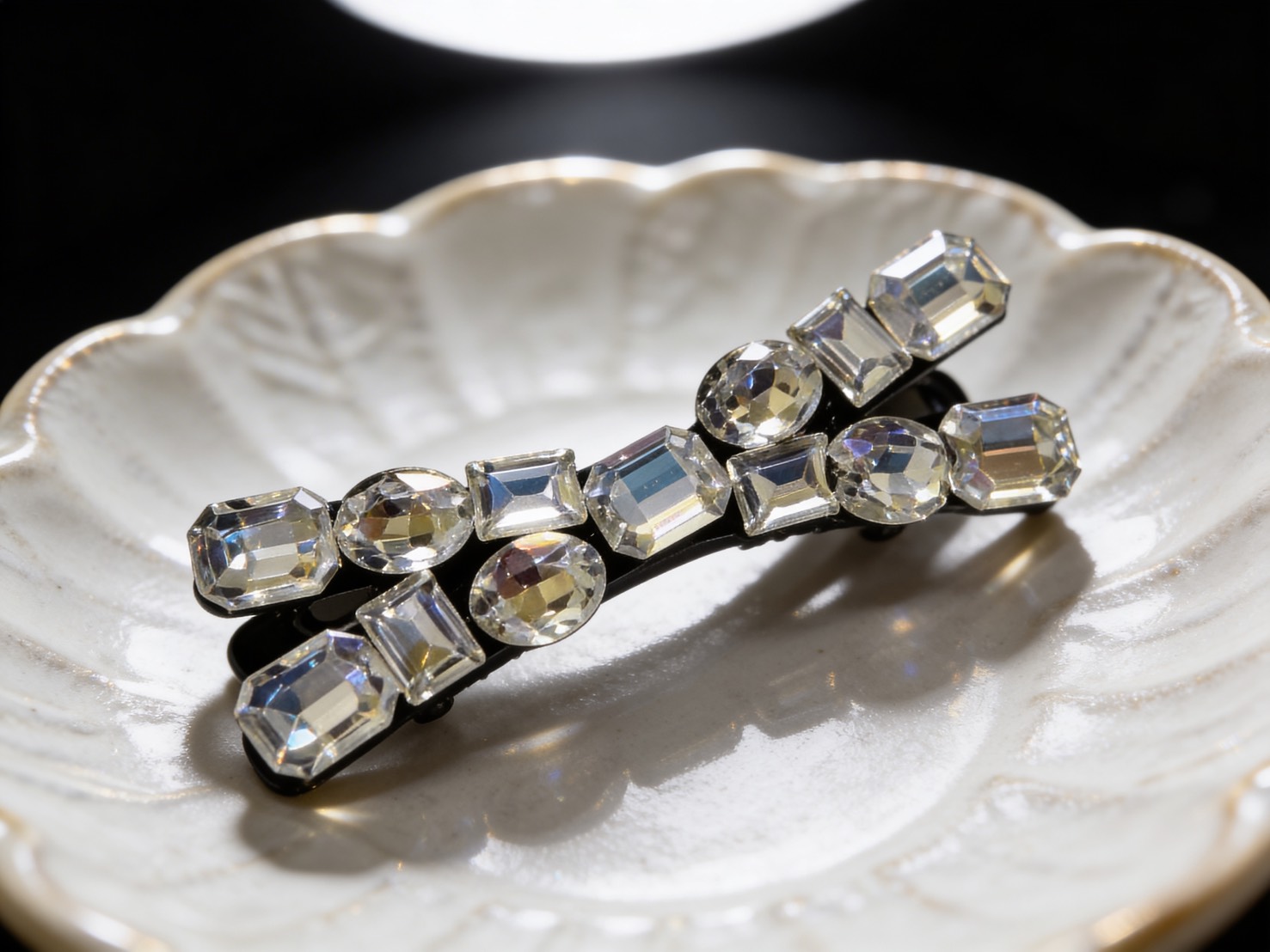 韓版大寶石超閃側夾-白