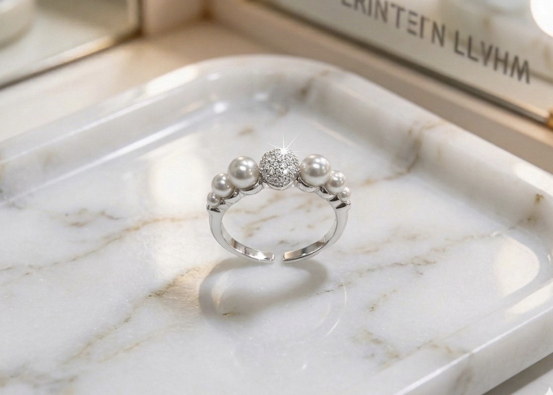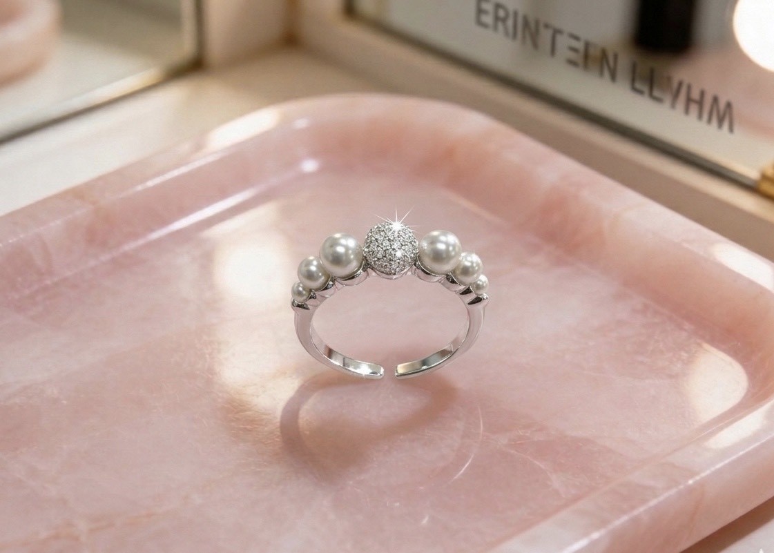 925純銀鑲鑽珍珠開口戒